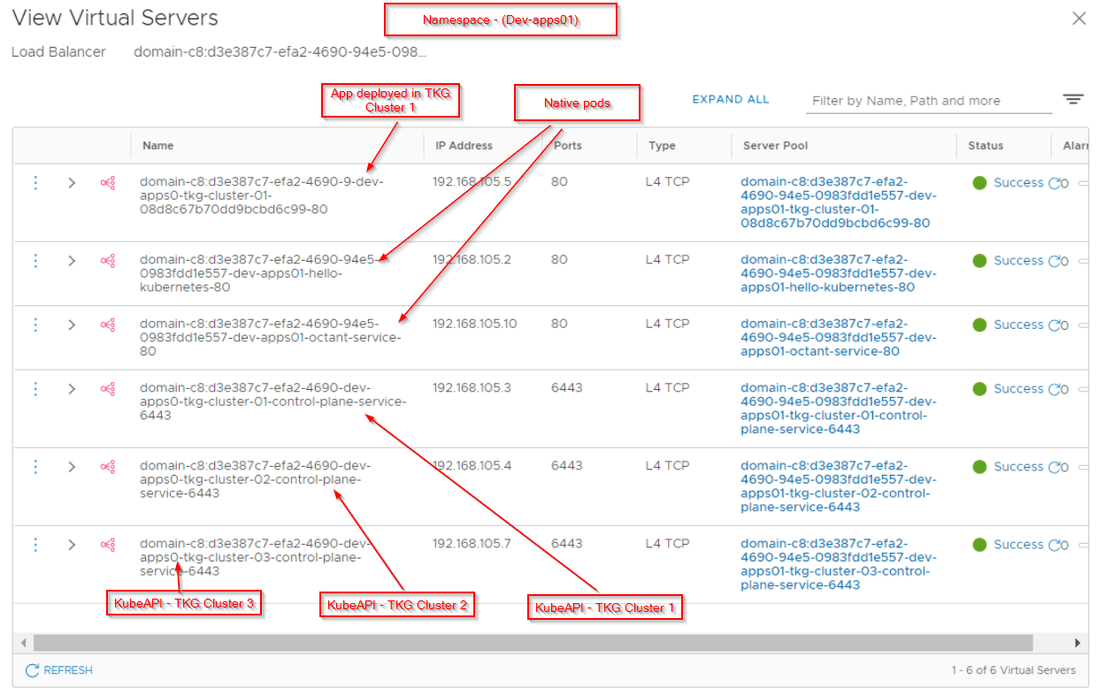 • Each TKG cluster, irrespective of the Supervisor namespace gets a dedicated Tier1 gateway. The loadbalancer provisioned on this T1 gateway provides the ingress access to kubeAPI and the deployed workloads in the TKG cluster.
