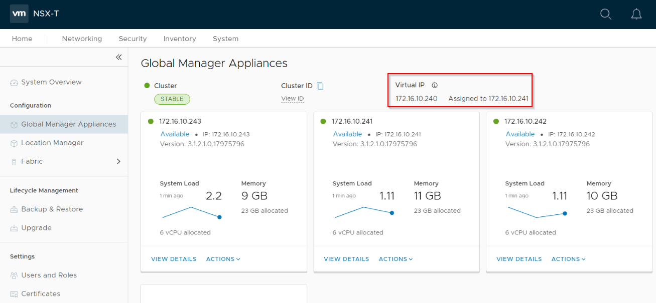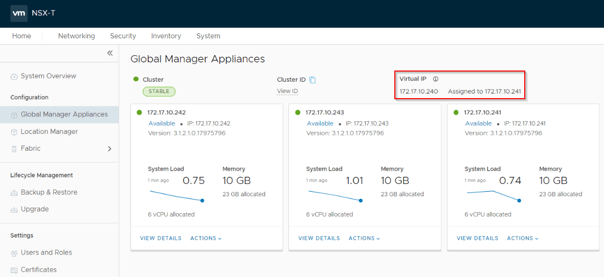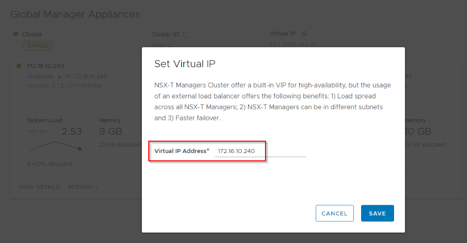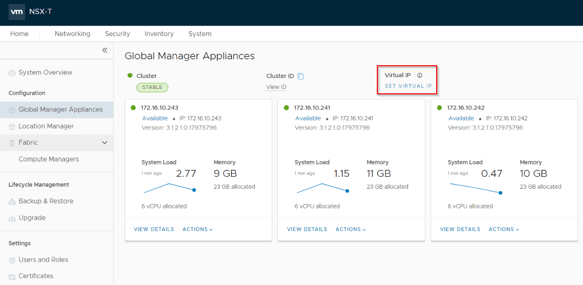 Once the three node GM cluster is up and the sync has completed, set a VIP for the cluster.
