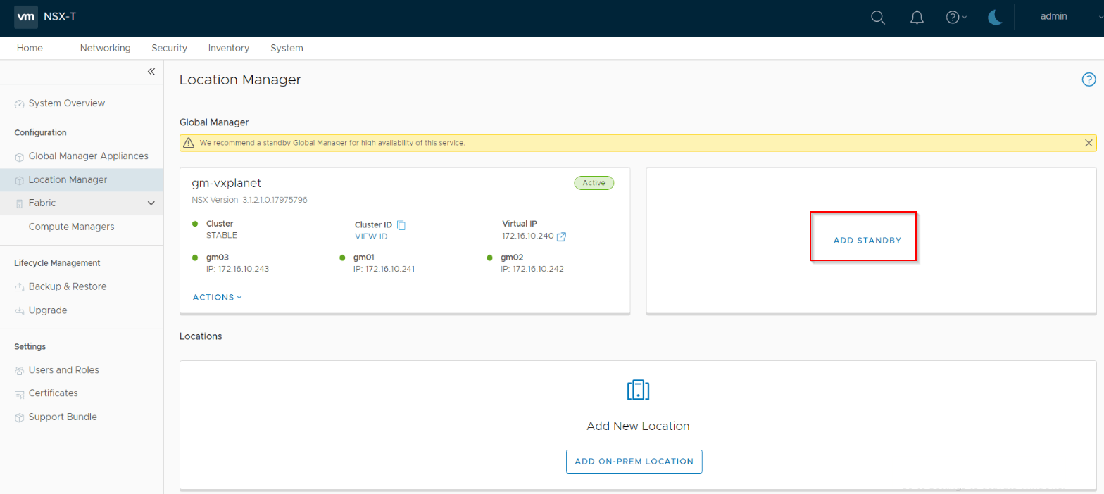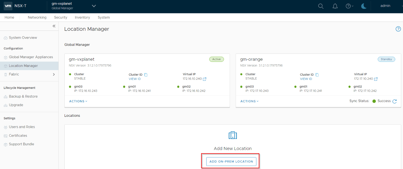 Once the standby GM is added and the full sync has completed successfully, we can now onboard the local managers from each location.