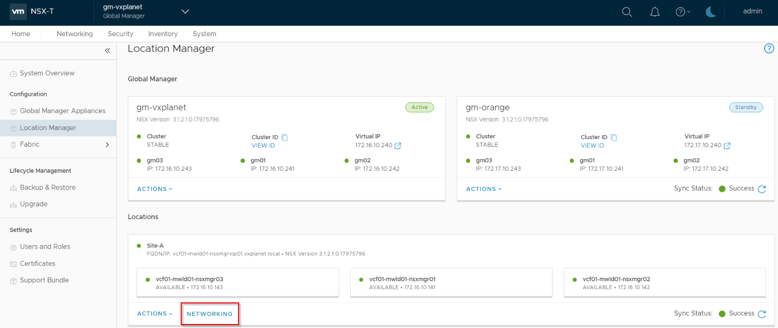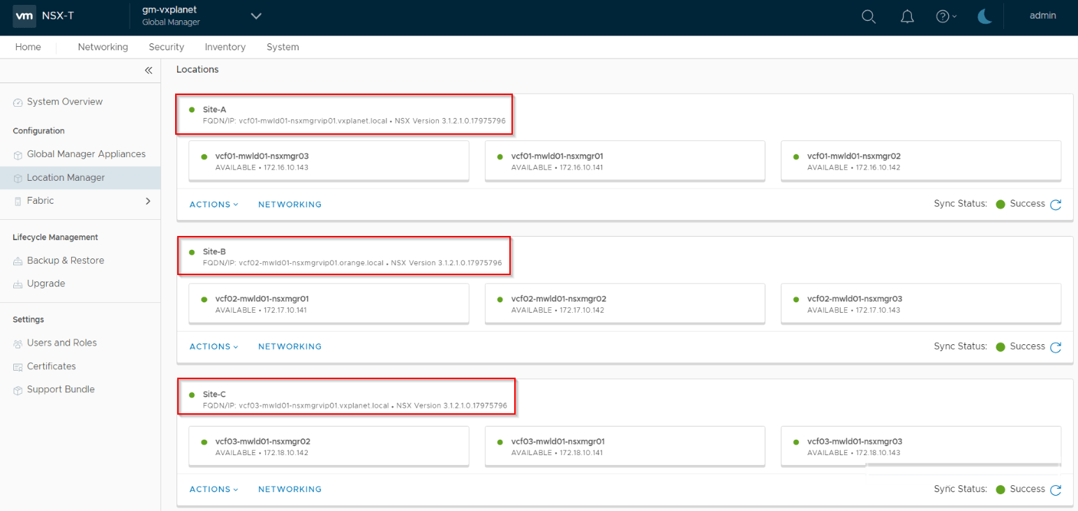 - Each site has it’s NSX-T local manager cluster. The local vCenter server is added as a compute manager to the LM to automate the deployment of additional LMs.
