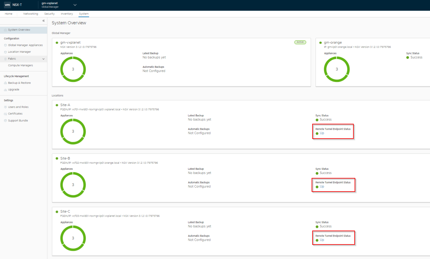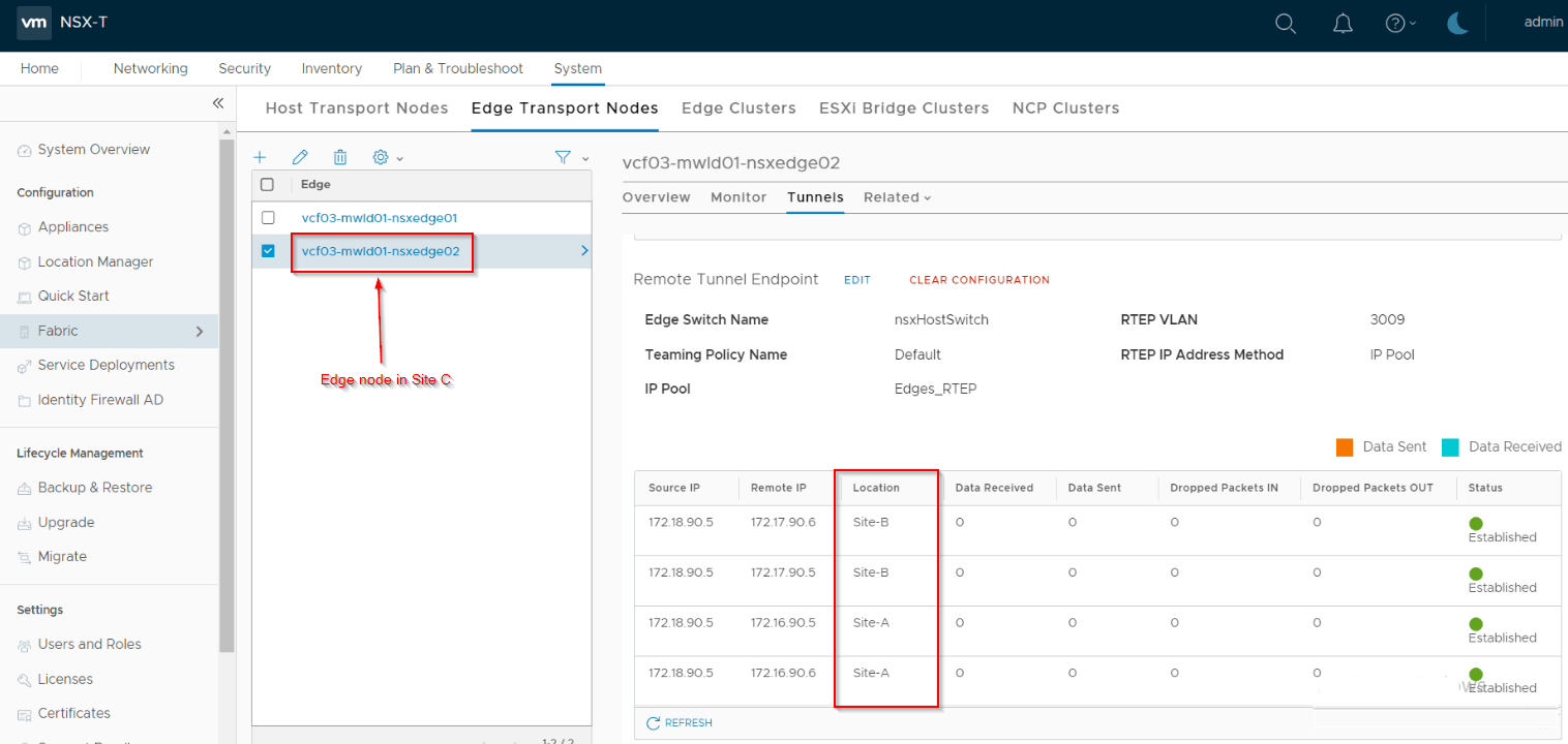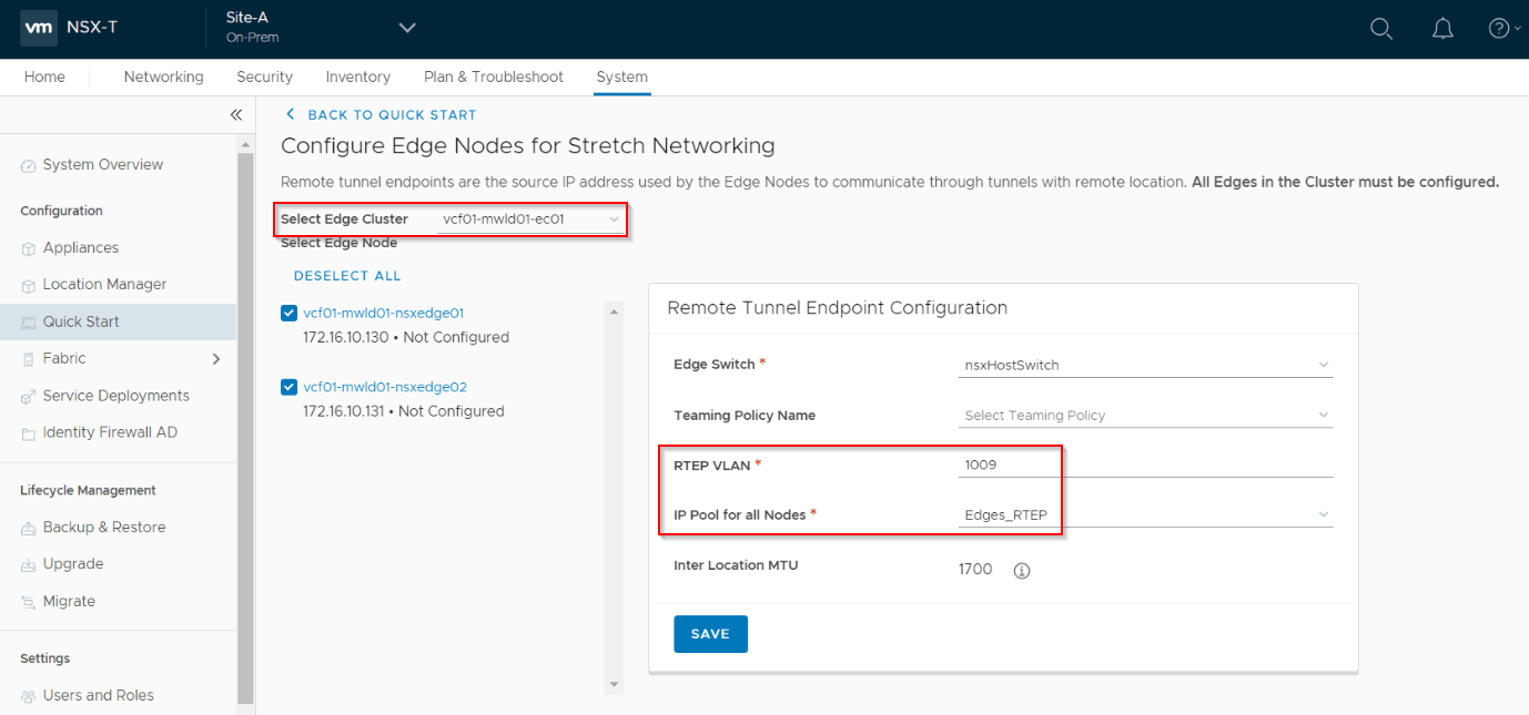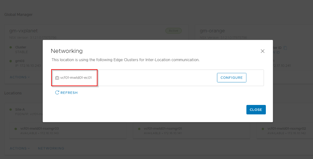 Once all the LMs are added, we can now configure the Remote TEPs (RTEP) on the edge nodes of each location.