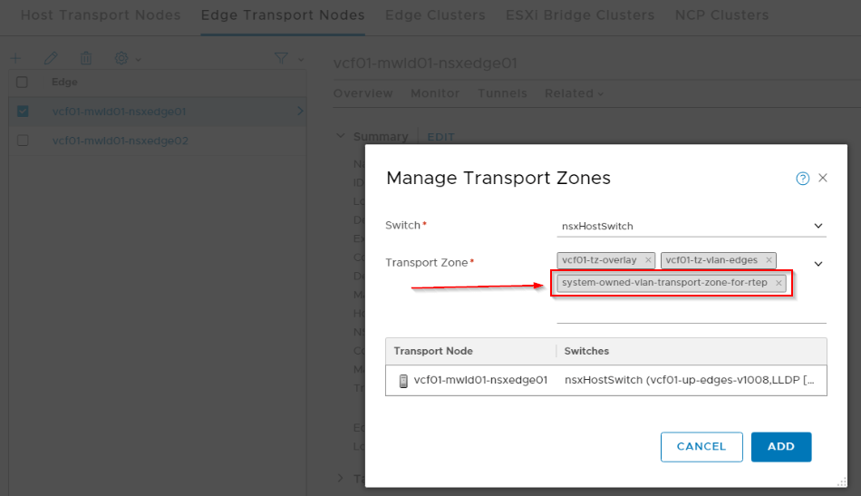 RTEP configuration will add an internal VLAN Transport zone to the edge nodes.