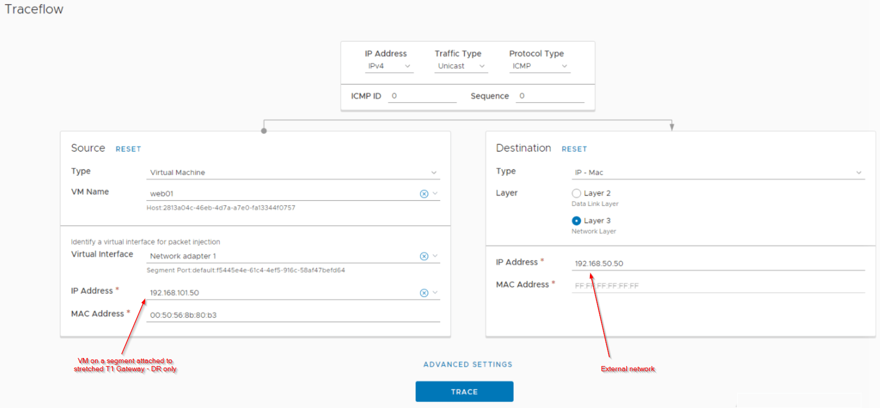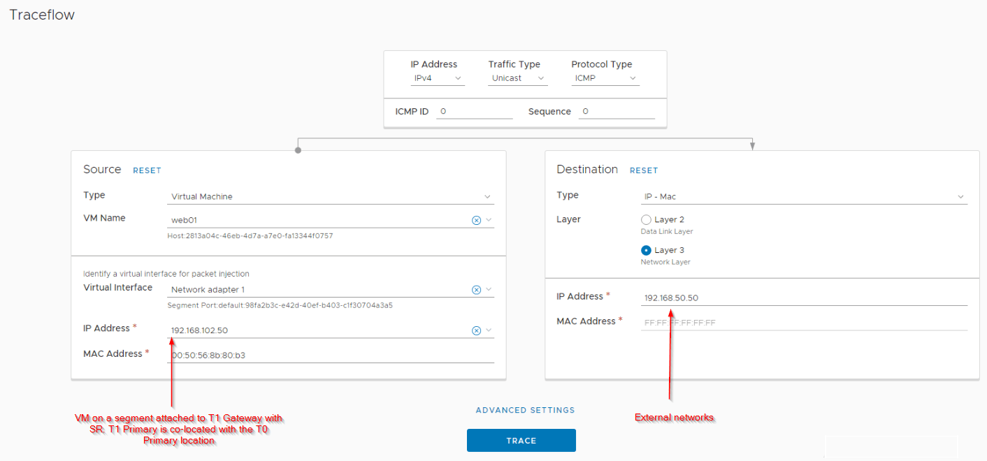 Let’s do a traceflow on the primary location and confirm the flow.