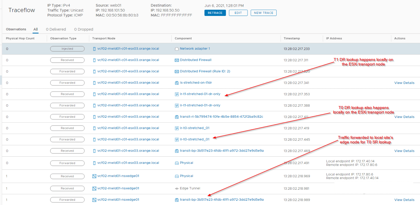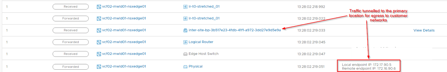 Let’s look at the traceflow results on the secondary location to confirm the flow: