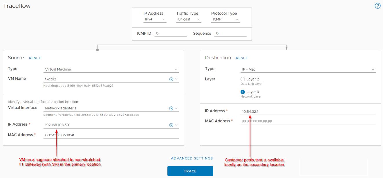 Let’s look at the traceflow results from the secondary location to confirm this.