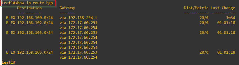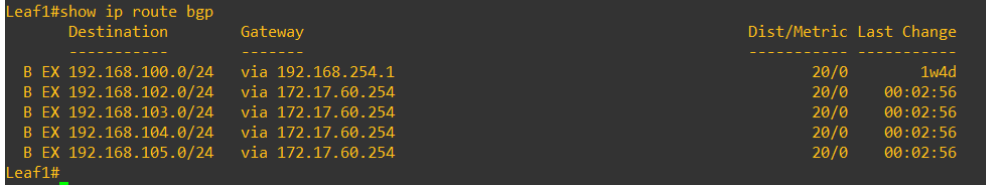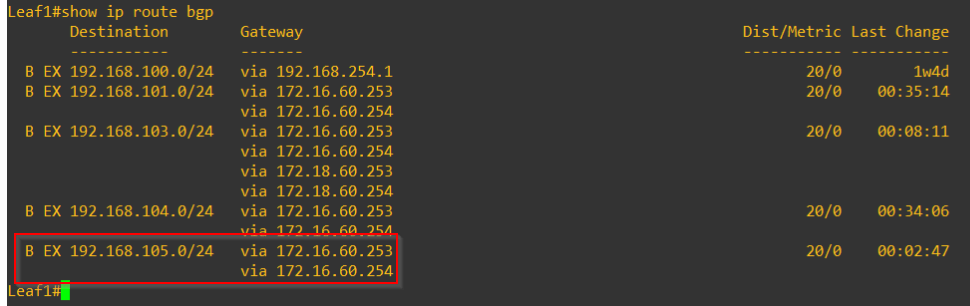 We should see Site B has now started advertising and receiving prefixes to/from the Leaf switches and network reachability is restored.