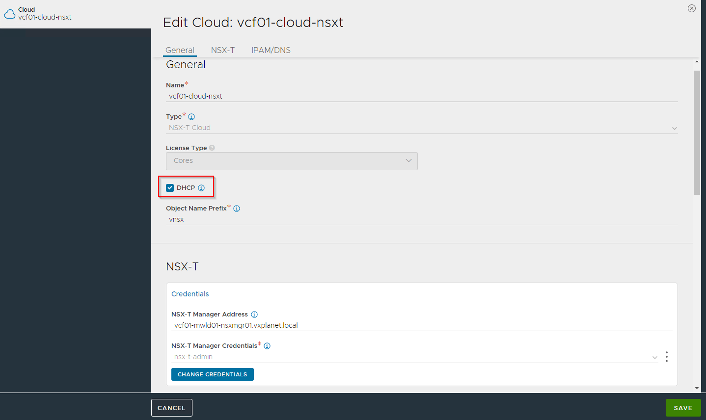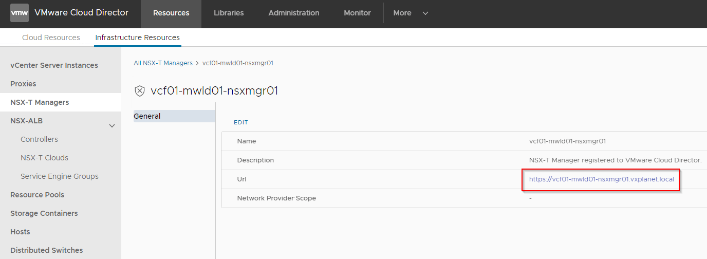 Note that if we use FQDN of NSX-T manager in the cloud account, the same FQDN (and not IP) has to be used while registering NSX-T managers in VCD.