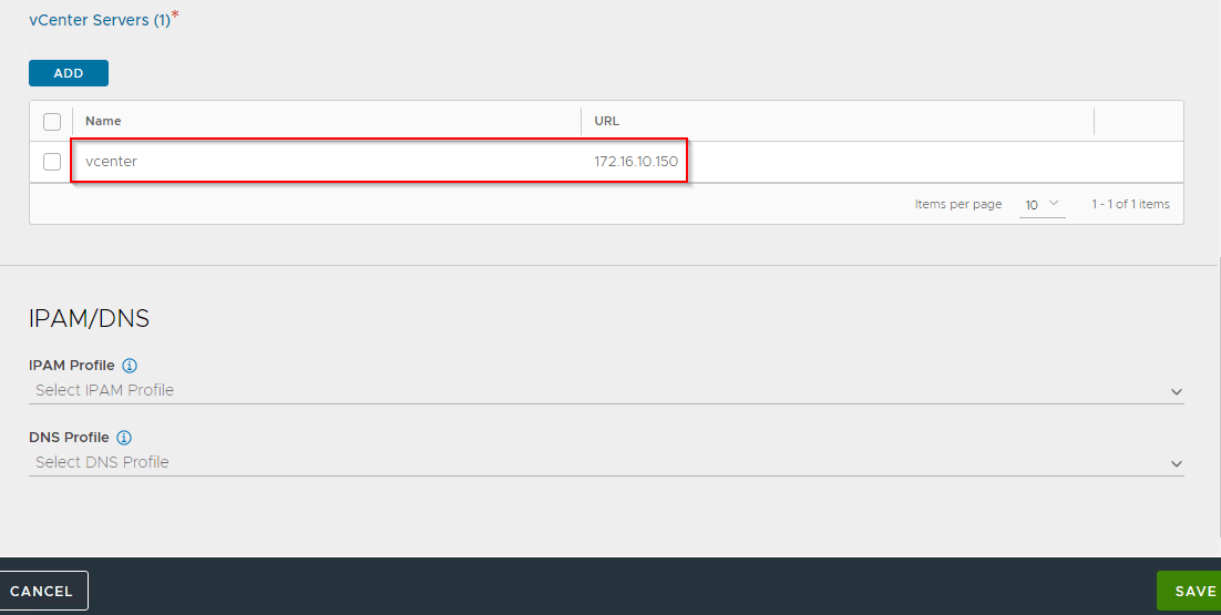 A vCenter Server account enabled with a content library need to be defined in the cloud account. This is the VCD resource vCenter that have the resource cluster and optional edge clusters. This is where the SEs will be deployed to. Based on the design decisions, SEs can be deployed on the vsphere resource cluster in the provider VDC or on the dedicated vSphere edge cluster (co-locating with NSX-T edge nodes). This vCenter account should be added as a compute manager in NSX-T and host prep’ed on the same overlay transport zone. If we select more than one vCenter server, the placement option for SEs need to be defined in the respective SEGs.