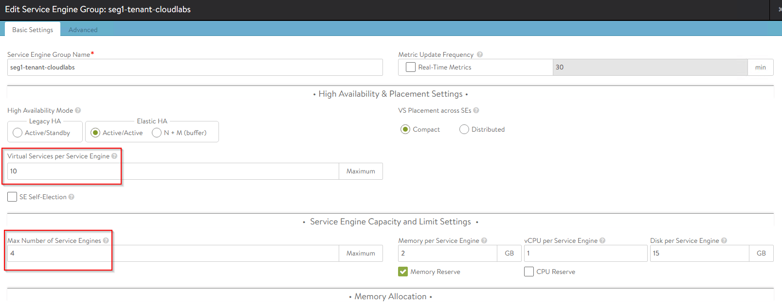 - If using ALB basic license, only Active – Standby HA mode is supported for the SEs.