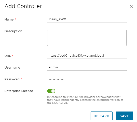 NSX ALB is available as the LBaaS option when NSX-T is used as the network backing type for the OrgVDCs. The native NSX-T loadbalancer isn’t used in VCD.