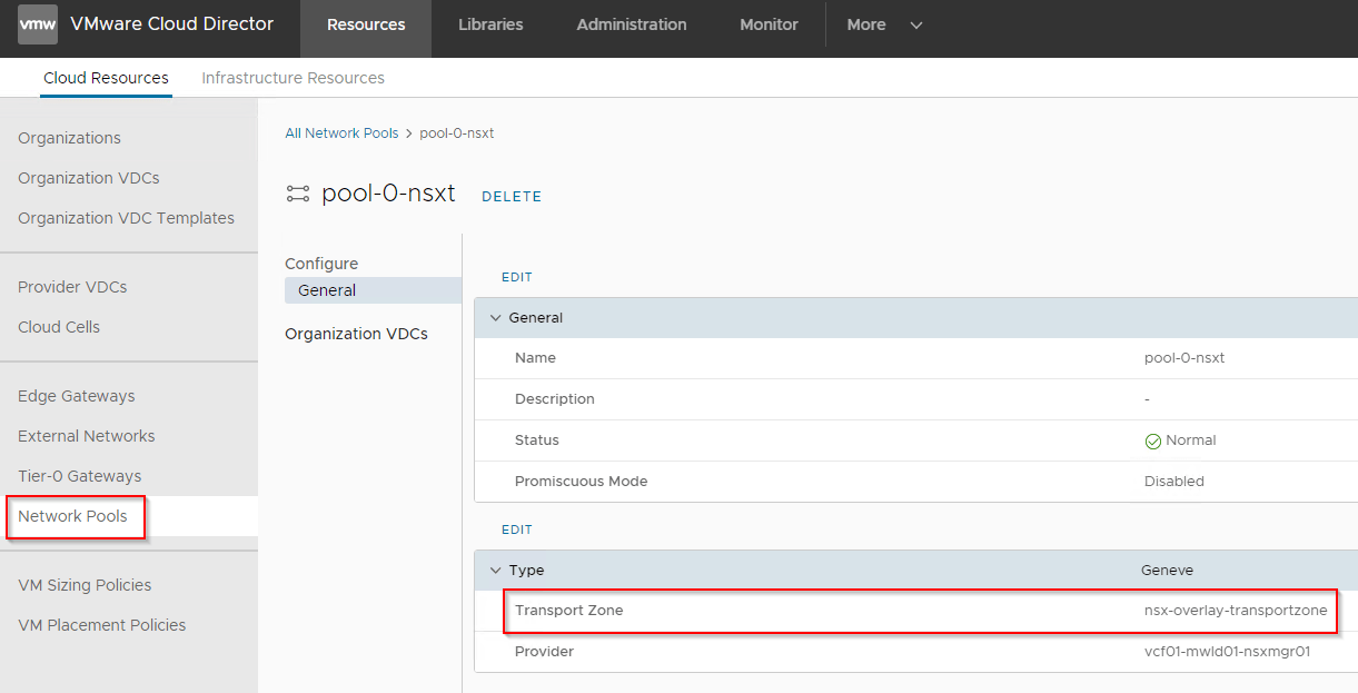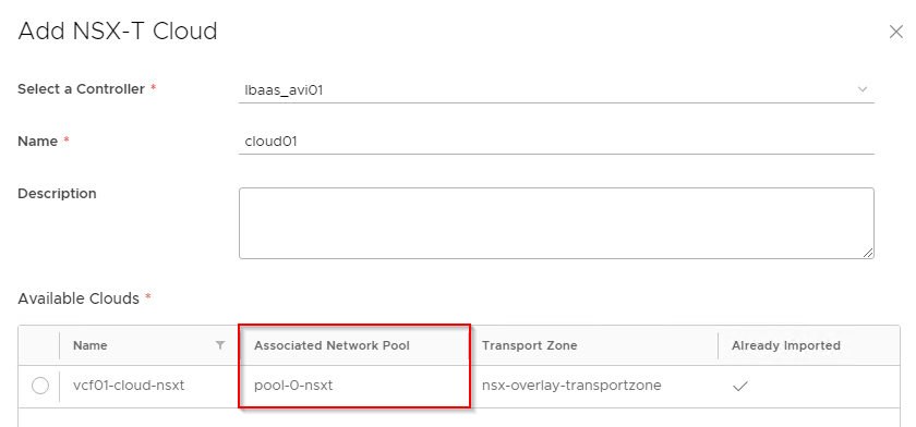 Also make sure that we have a Network pool created in VCD on the same transport zone as the ALB NSX-T Cloud account.