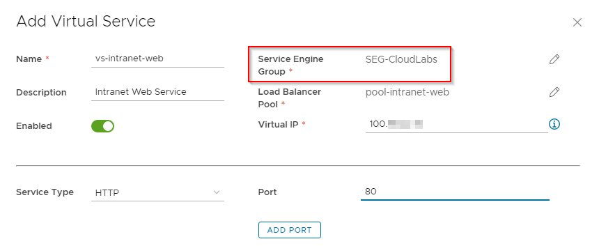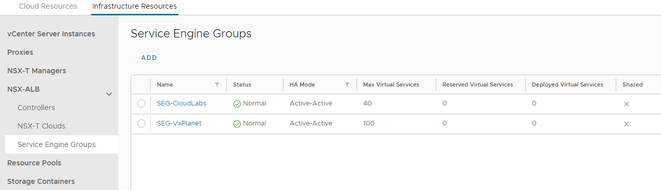 From the NSX ALB UI, we should see that the virtual service is deployed on the SEG mapped to the orgVDC gateway.