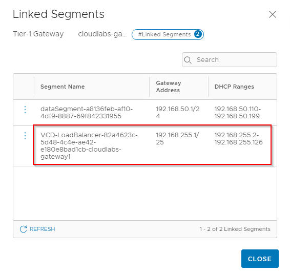 Once Load balancer service is enabled under ‘General Settings’, a new NSX-T service segment gets initialized and attaches to the edge gateway. This service segment is the data network for SEs and gets added under the NSX-T Cloud configuration in ALB.