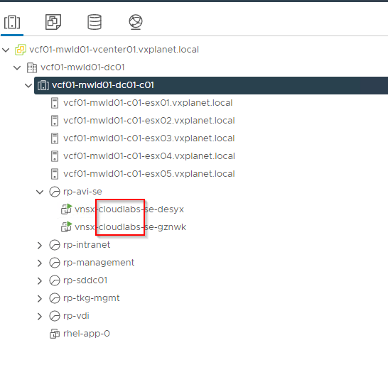 In the vSphere UI, we should see the SEs created with the placement options that we defined in the SEG. With the SE naming prefixes, vSphere admin can track SEs to VCD tenants.
