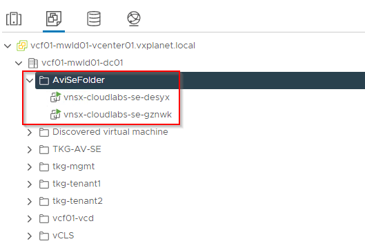 We should see the vCenter folders created for SEs as defined under the SEG properties.