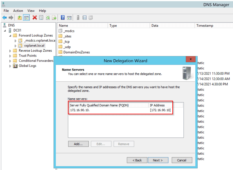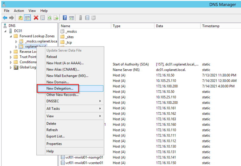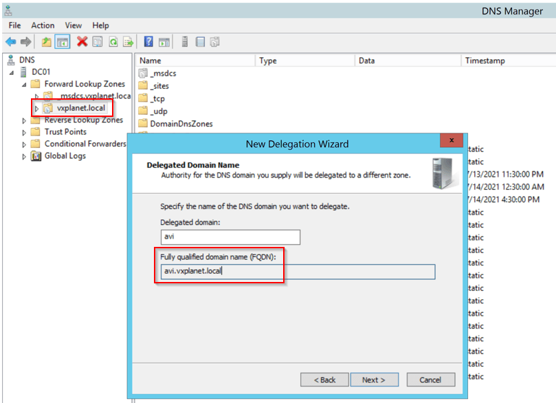 To be able to resolve FQDNs of applications deployed in NSX ALB from the corporate network, we need to set up a DNS delegation from the corporate DNS network to NSX ALB DNS Virtual service for the DNS sub zone.