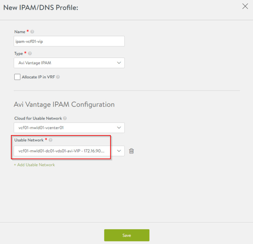 We create an IPAM profile with the VIP port group and associate it with the vSphere Cloud that we created previously.