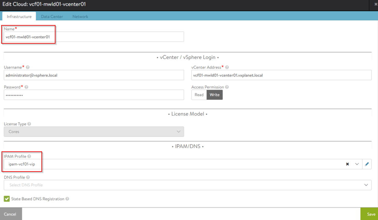 We add a vSphere Cloud in NSX ALB and register the vCenter Server.
