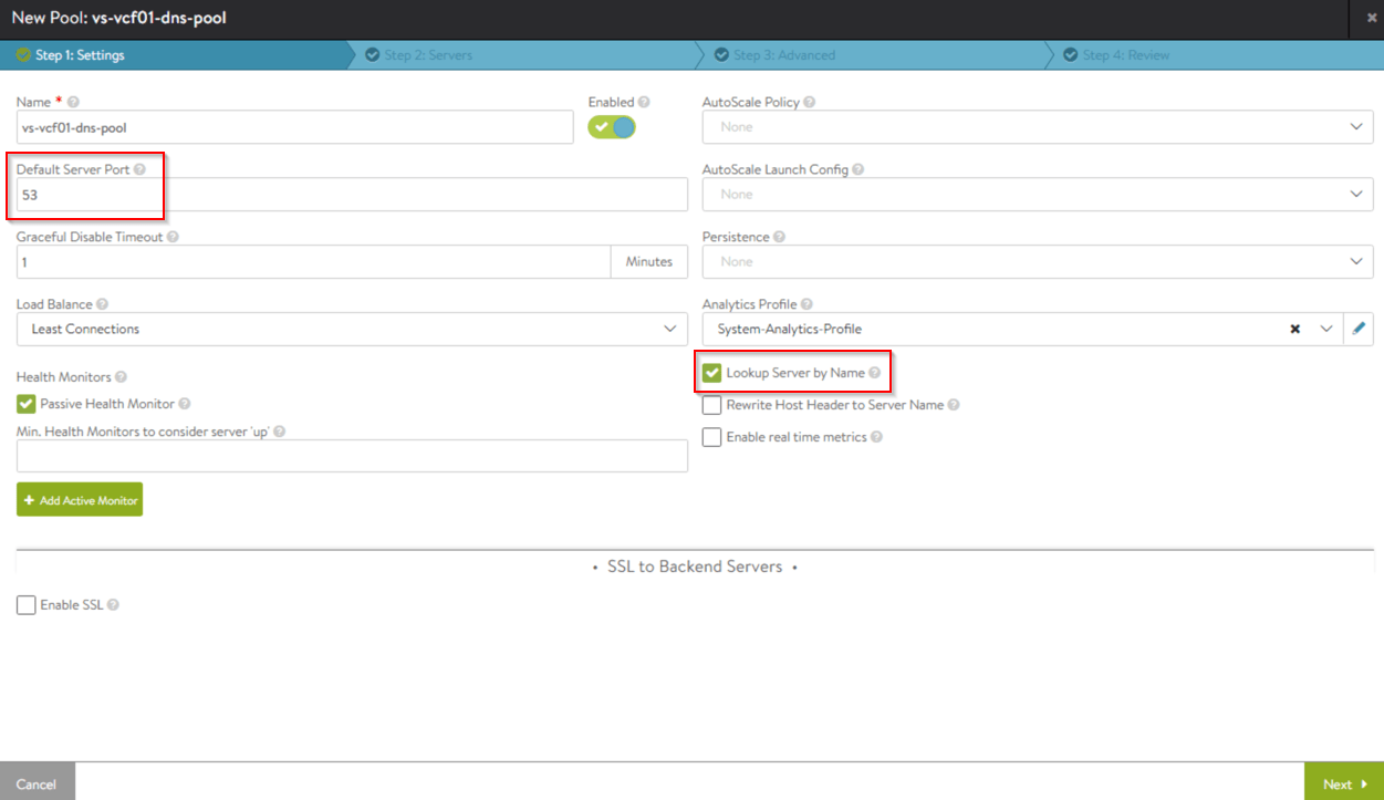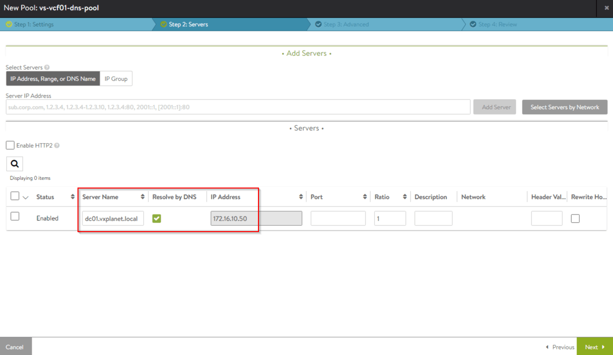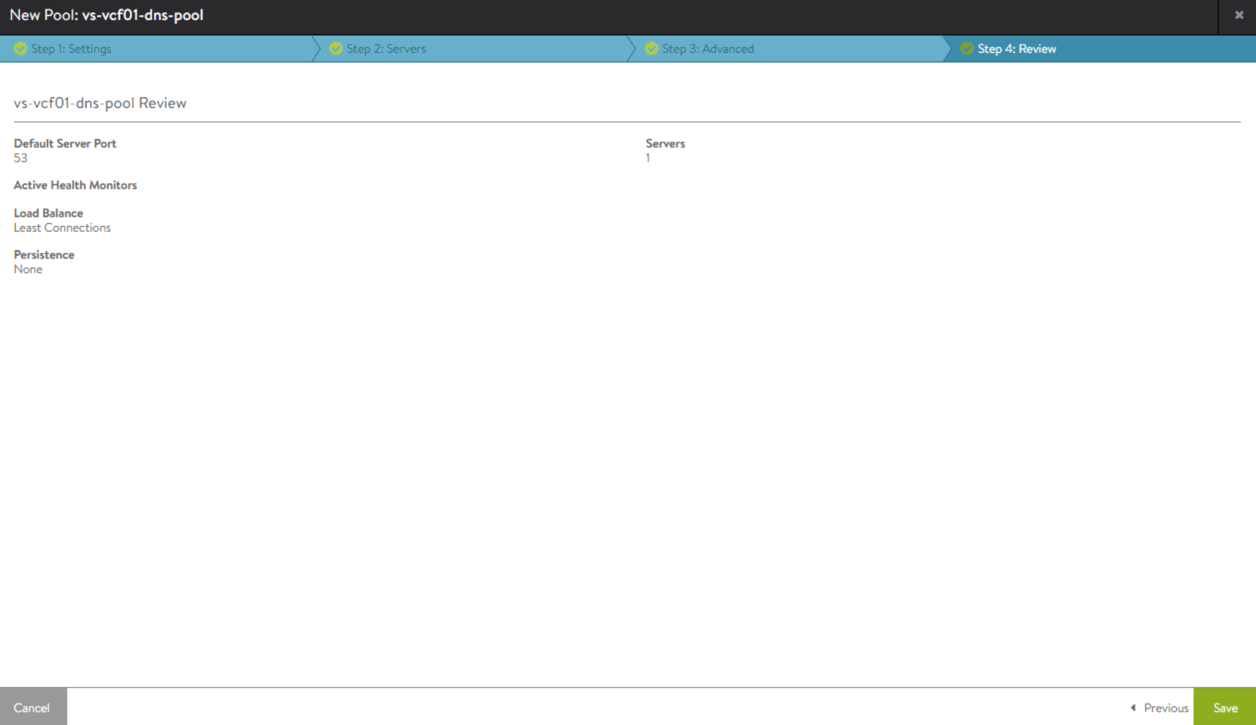 The pool member is the DNS forwarder of this DNS virtual service, which will be our corporate upstream DNS server. This is useful if any clients point to the NSX ALB DNS and want to resolve external FQDNs.