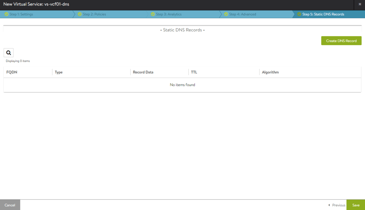 If needed, we can add static DNS records in the DNS virtual service – for eg: alias entries for the application VS’es, Management components etc. All application VS that we create will have dynamic DNS records auto-created.