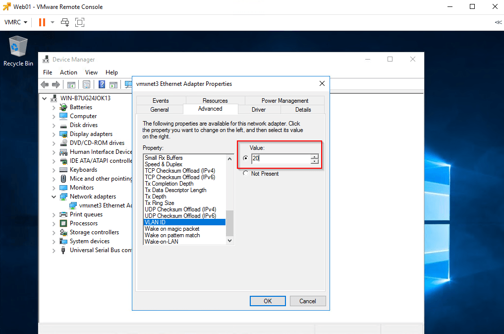 We will enable guest VLAN tagging on the VMs (on VLAN 20) and confirm they are able to communicate to each other.